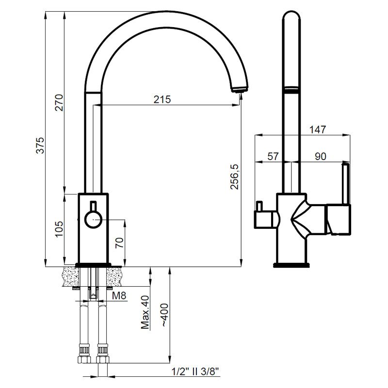 Смеситель для кухни AZARIO TASCO AZ-15164421 с подключением к фильтру для питьевой воды