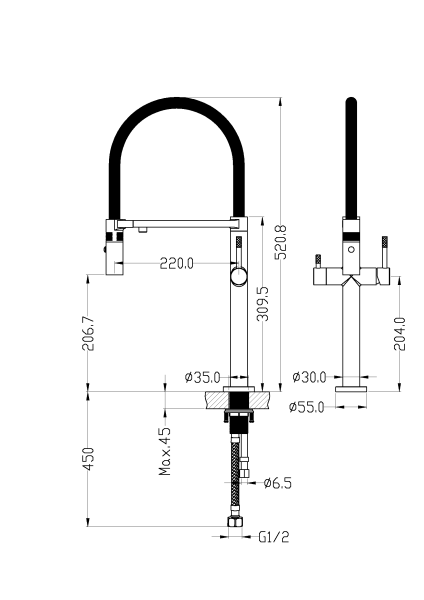 - Длина излива, см:22