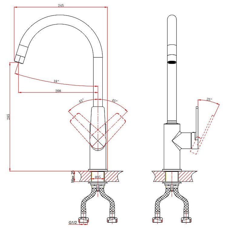 Гибкий излив:нет