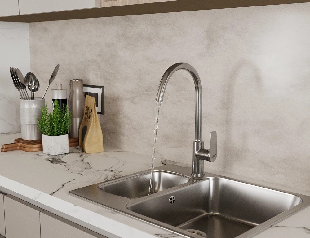 Смеситель для кухни D&K Bayern.Fürth DA1522401 Fürth - сочетает в себе привлекательный и продуманный дизайн, практичный и функциональный, лаконичные формы с выбором популярных цветовых решений глянцевый хром и loft-black поможет создать идеальную кухню и ванную комнату каждому.- Смесители из латуни высокого качества, безопасны для людей и домашних животных из-за пониженного содержания свинца;- Блестящее хромированное покрытие обладает высокими защитными и декоративными свойствами;- Протестирован на 500 000 циклов включения, что составляет более 30 лет повседневного использования, семьи из четырёх человек;- Аэратор Neoperl экономит воду за счет смешивания с воздухом, струя становится ровнее и мягче, снижая уровень шума;- Гибкая подводка 40 см идёт в комплекте для быстрой установки.