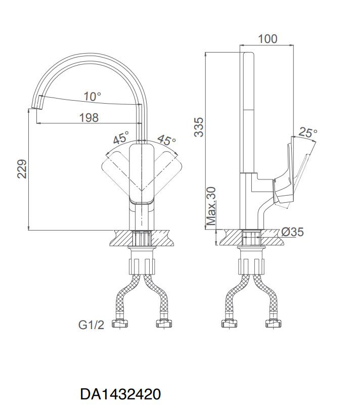 Высота смесителя:33.5