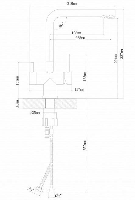 Смеситель для кухни Florentina Арес с подключением под фильтр нержавеющая сталь