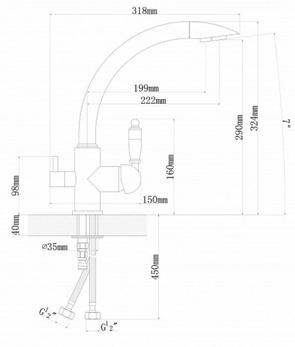 Смеситель для кухни Florentina Шале с подключением под фильтр антрацит купить