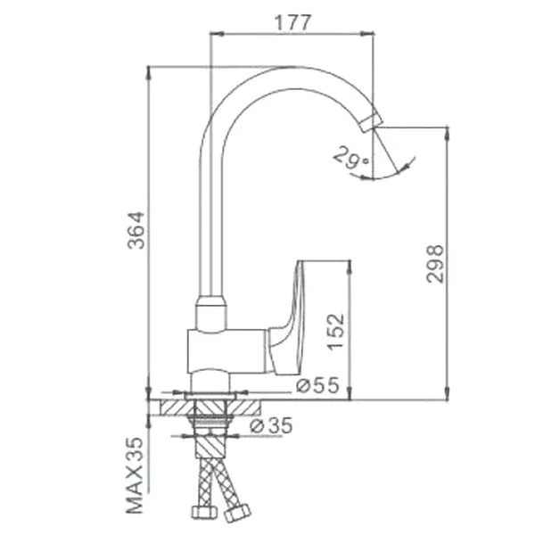 • Высота смесителя: