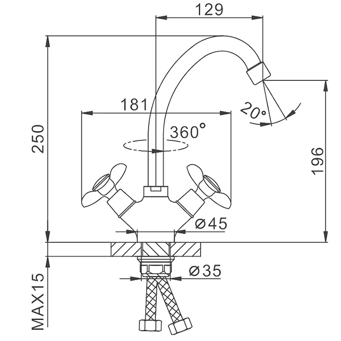 • Высота смесителя: