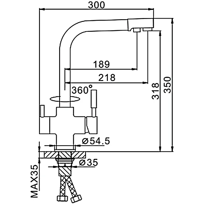 • Высота смесителя: