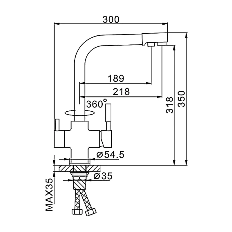 • Высота смесителя: