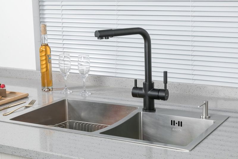 Смеситель имеет совмещенный излив для фильтрованной воды