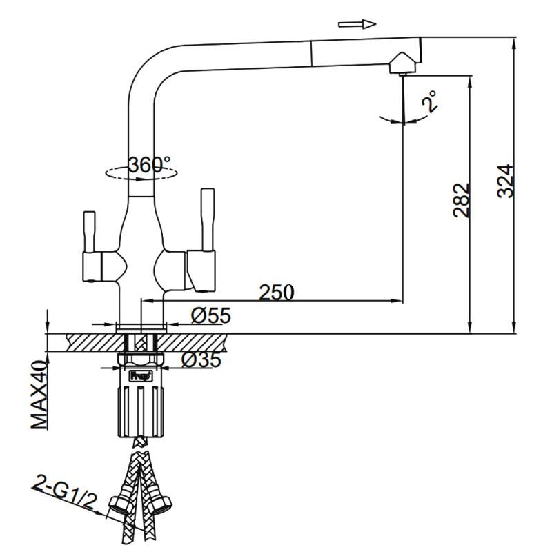 Функции излива:Выдвижной, Поворотный
