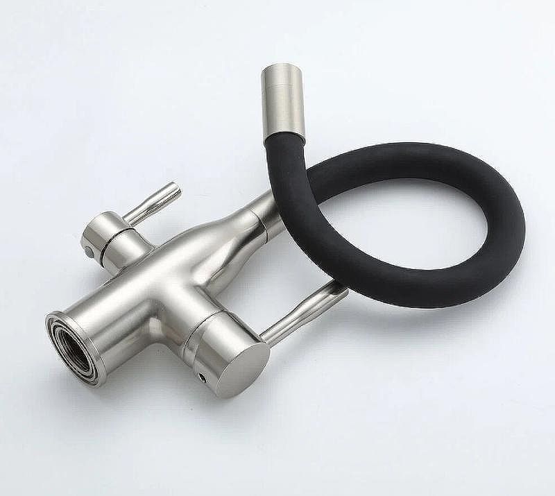Излив: поворотный, гибкий, с каналом для питьевой воды.