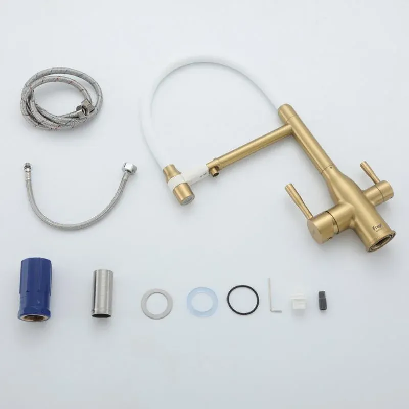 Смеситель для кухни Frap F4398-3 белый золотой сатин купить