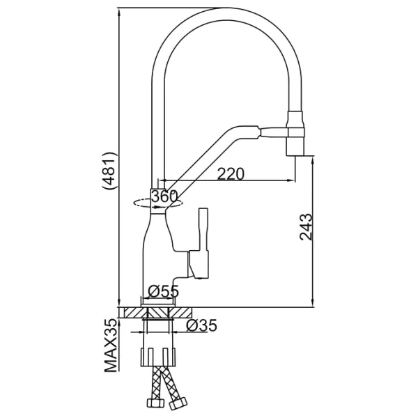 • Гибкий излив: