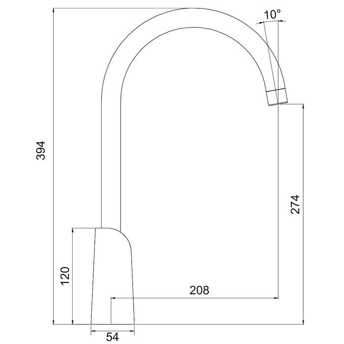 - Длина излива, мм: 208