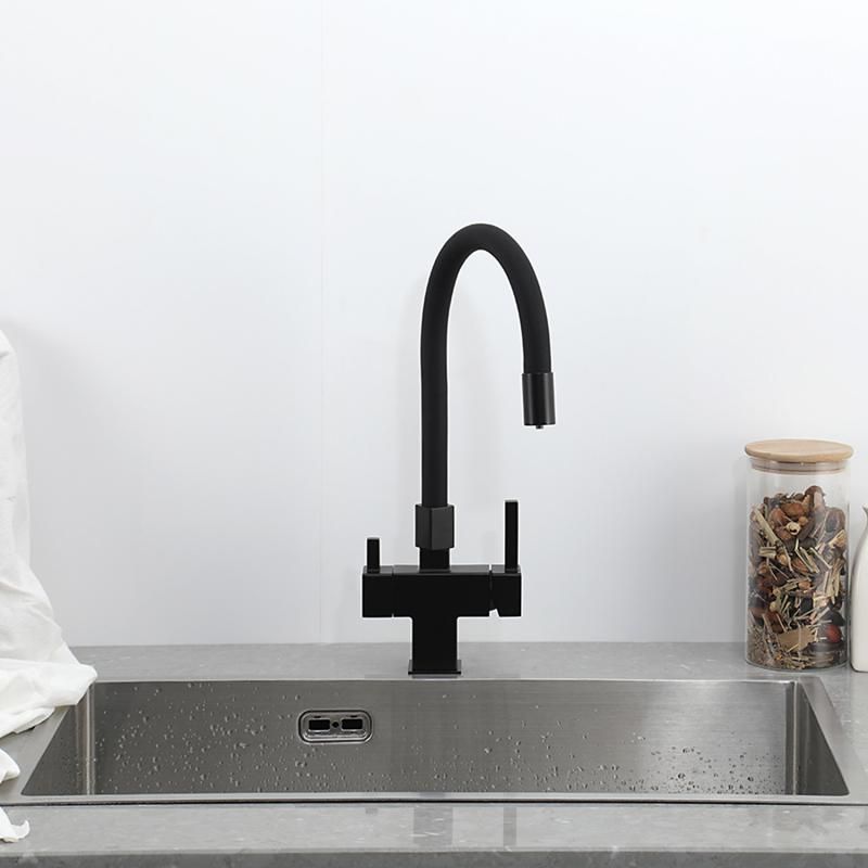 Смеситель для кухни Gappo G4395-36 с подключением фильтра питьевой воды и гибким изливом чёрный купить