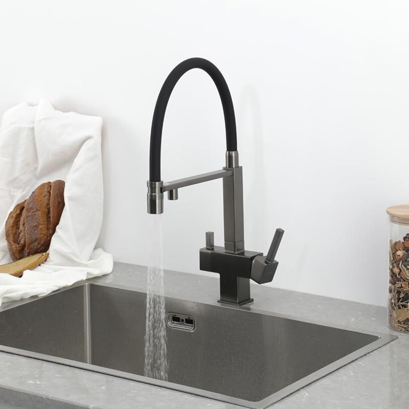 Смеситель для кухни Gappo G4395-59 с подключением фильтра питьевой воды и гибким изливом оружейная сталь/чёрный