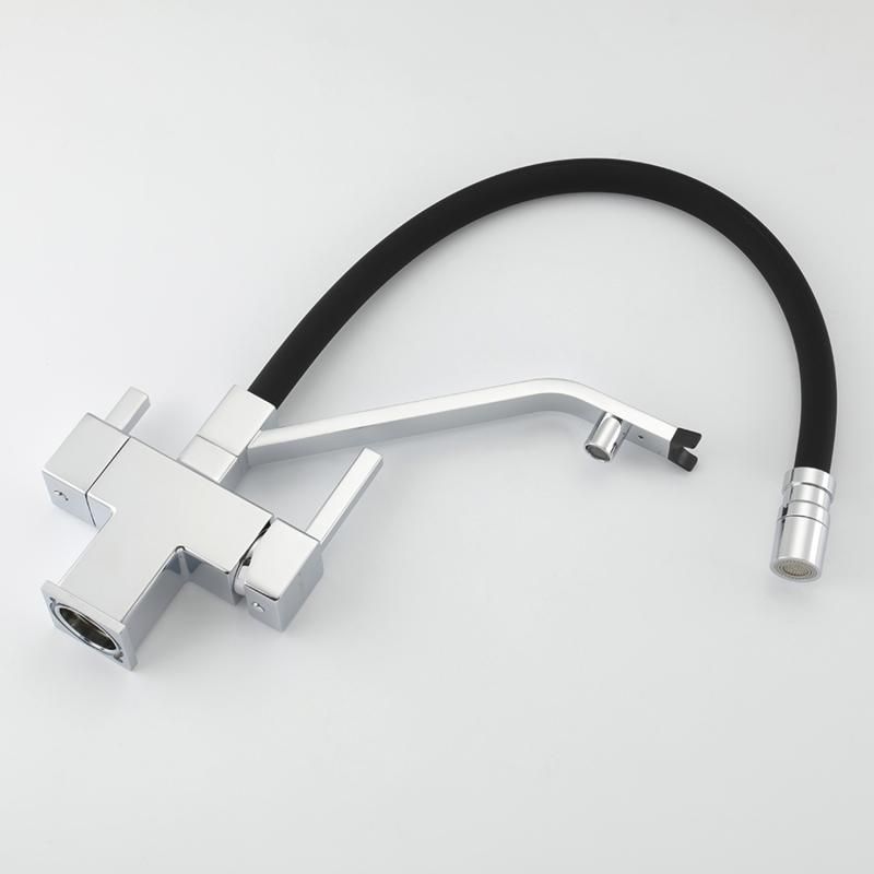 Смеситель для кухни Gappo G4395-60 с подключением фильтра питьевой воды и гибким изливом хром/чёрный