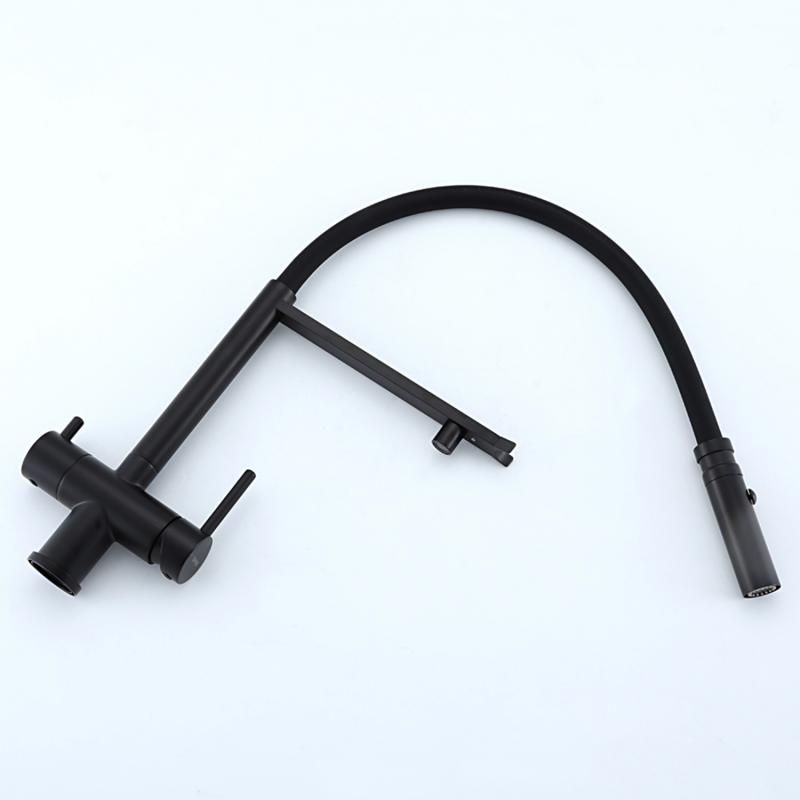 Смеситель для кухни Gappo G4397-86 с подключением фильтра питьевой воды и гибким изливом чёрный купить