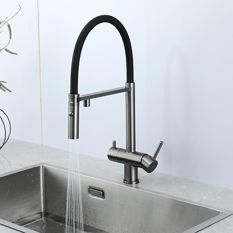 Смеситель для кухни Gappo G4397-89 с подключением фильтра питьевой воды и гибким изливом оружейная сталь/чёрный