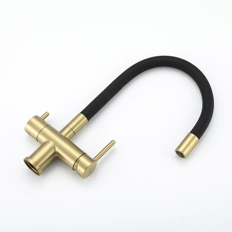 Смеситель для кухни Gappo G4398-33 под фильтр с гибким изливом чёрный/золото