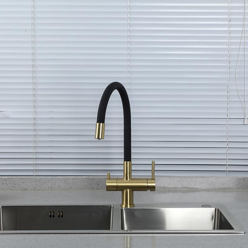 Смеситель для кухни Gappo G4398-33 под фильтр с гибким изливом чёрный/золото купить
