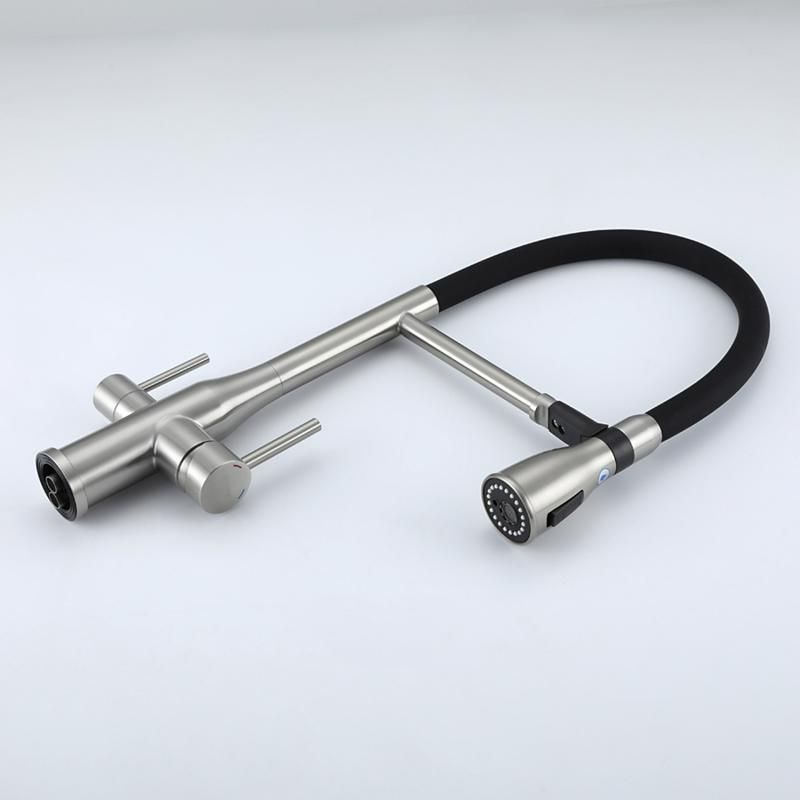 Смеситель для кухни Gappo G4399-75 с гибким изливом и подключением фильтра питьевой воды сатин/чёрный