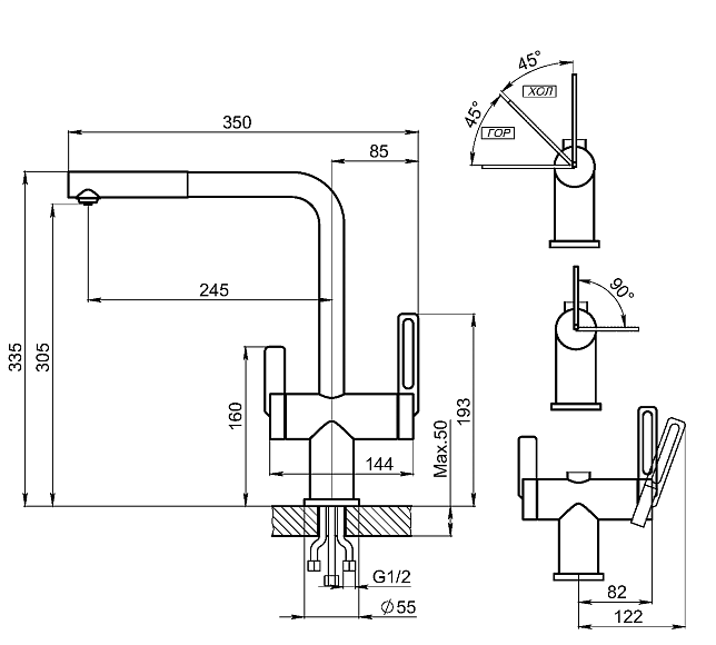 Смеситель для кухни Granula 8170, ТУРМАЛИН Турмалин купить