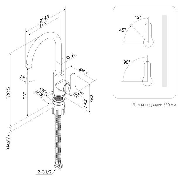 Плавный ход ручки и абсолютная точность регулировки температуры и напора воды — за счет качественного керамического картриджа Softap. Угол открытия ручки для включения водопроводной воды – 90 градусов (45 градусов от себя, 45 – на себя).
