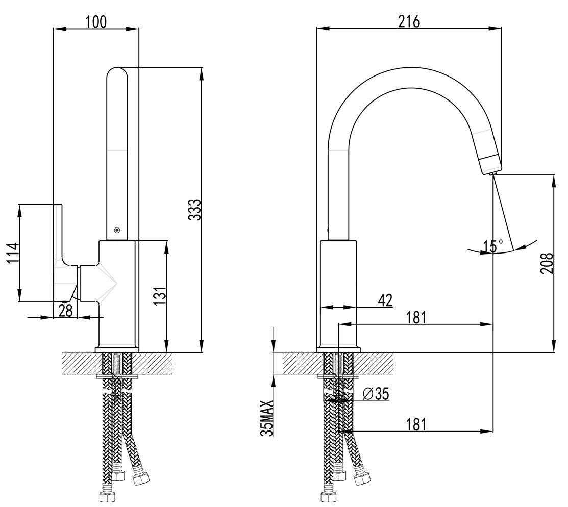 Гибкий излив:нет