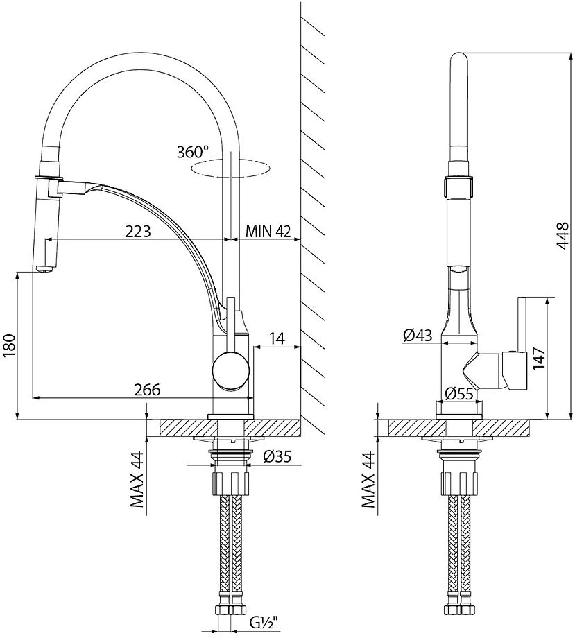 Смеситель для кухни Lemark Soul LM6007BL с гибким изливом чёрный
