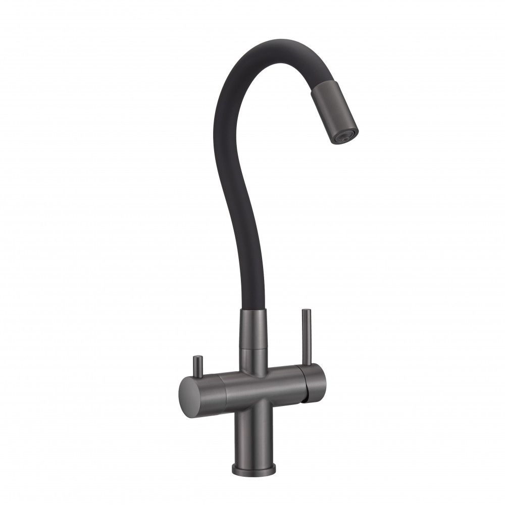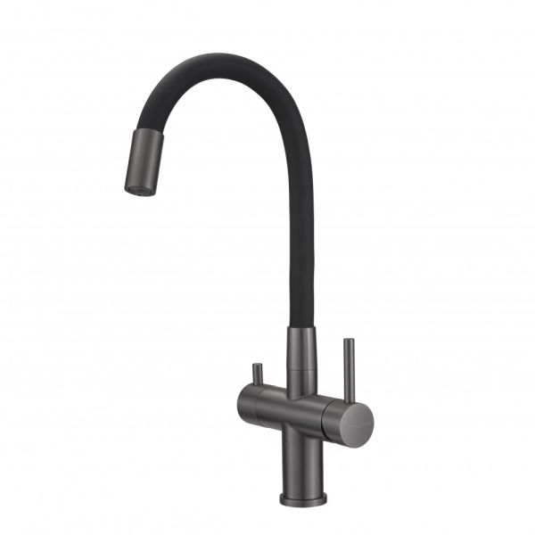 Смеситель для кухни Milacio Ultra 560 MCU.560.GM под фильтр с краном для питьевой воды и гибким изливом вороненая сталь купить
