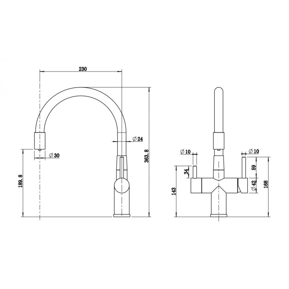 2. Возможность подключения фильтра обеспечивает легкий доступ к чистой питьевой воде и избавляет от необходимости установки дополнительного крана, сохраняя цельность и эстетику пространства. Для подачи фильтрованной воды предусмотрен отдельный рычаг регулировки.