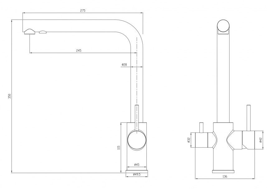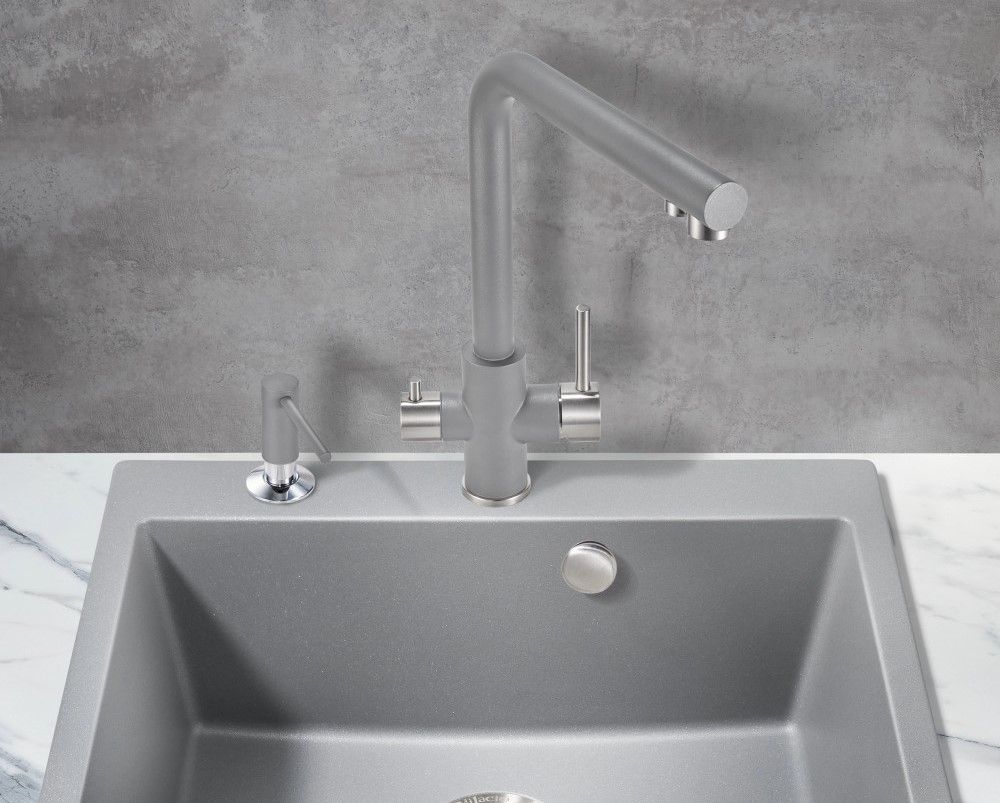 Смеситель для кухни Milacio Ultra MCU.553.GR под фильтр с краном для питьевой воды серый металлик купить