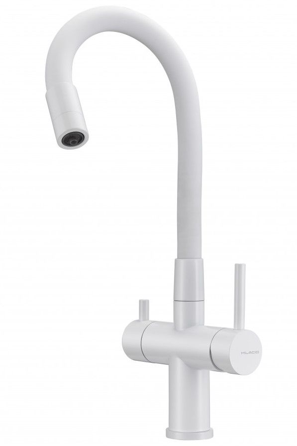 Смеситель для кухни Milacio Ultra MCU.560.WH под фильтр с краном для питьевой воды и гибким изливом белый купить
