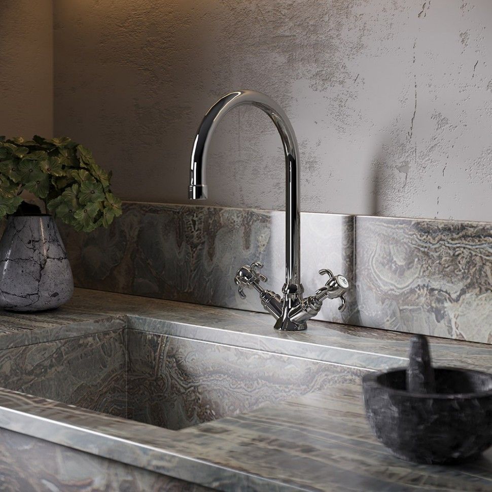 Высокий корпус и поворотный излив делают двухвентильный смеситель незаменимым для кухни, позволяя наполнить кастрюлю или вазу водой, помыть посуду. Контраст традиционной формы излива и необычных вентилей делает функциональность небанальной и привлекательной. Смеситель сможет стать украшением дизайна в стиле нео-классицизм, модерн или расставить акценты в стиле фьюжн.Рекомендации по интерьерным решениям со смесителями ORNELLAIAМожет ли одна только форма смесителя удачно намекнуть о смешении нескольких стилей, даже при использовании лаконичной отделки других поверхностей ванной комнаты? Коллекция ORNELLAIA от бренда PAINI своими изгибами и эклектикой форм подтверждает это. А качество, доказанное 60-летней историей этой итальянской фабрики, позволит вам сосредоточиться на дизайне.Оригинальный, стильный смеситель для ванной комнаты — это простой и быстрый способ сделать интерьер визуально более статусным. Рядом с дизайнерской моделью даже неброская сантехника и традиционная плитка заиграют, а обстановка в целом будет казаться значительно дороже.В интерьере в стиле модерн хочется создать ощущение свободного пространства, но при этом внести затейливые изгибы, асимметрию. Подходящий прием для этого - использовать смеситель, который привлечет внимание своей формой.Когда мы говорим о вентилях в смесителях, то сразу вспоминаем о классической стилистике ванной, но необычная форма вентилей коллекции ORNELLAIA с загнутыми внутрь лепестками придаст новый визуальный смысл этому элементу управления. Такая сантехника сможет стать украшением дизайна в стиле нео-классицизм, модерн или расставить акценты в стиле фьюжн.