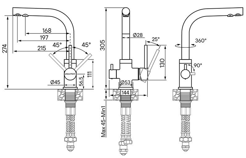Конструктивная технология Trinkwasser предусматривает поступление фильтрованной воды, которая не смешивается с водопроводной. Фильтрованная вода подается через отдельные трубку и аэратор.