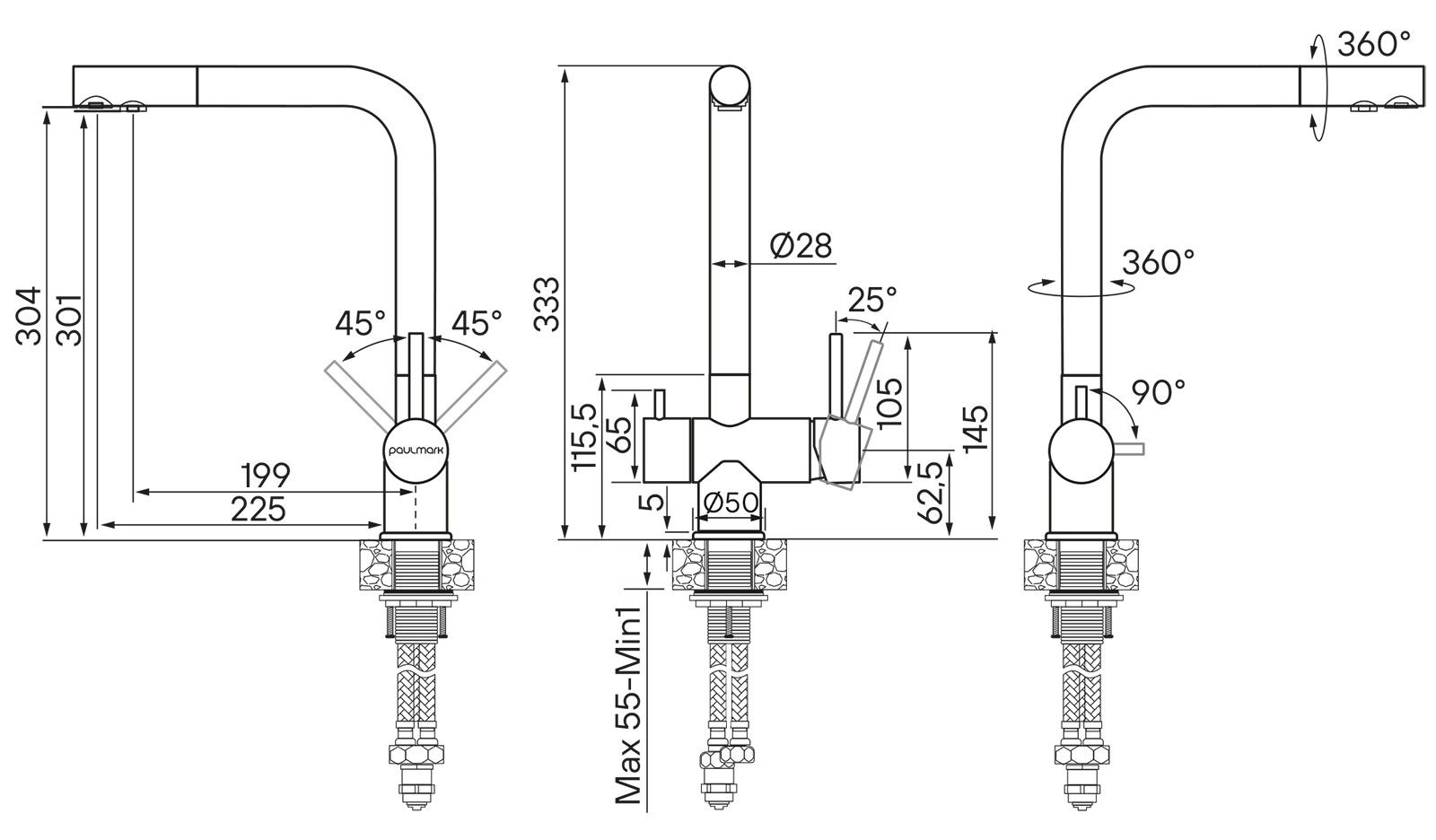 Смеситель для кухни, с возможностью подключения фильтра питьевой воды, артикул Sk213020-431Изготовлен из нержавеющей стали AISI 304. Нержавеющая сталь AISI 304 легирована никелем, марганцем, медью и хромом, что обеспечивает ей повышенную прочность и устойчивость в коррозионных средах, такая сталь не подвержена деформациям.
