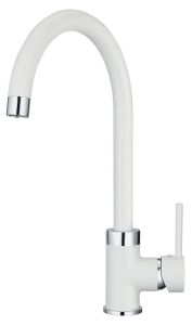 Смеситель для кухни Point PN3101W белыйСмеситель для кухни PN3101W с высоким поворотным изливом - это отличное сочетание качества и дизайна. Корпус смесителя выполнен из латуни. Картридж диаметром 35 мм позволяет настроить подходящую температуру воды. Цвет смесителя подобран под аналогичный цвет моек POINT. Смеситель PN3101W предназначен для установки в заранее подготовленное отверстие диаметром 35 мм, его можно установить как на мойку, так и на столешницу.Цвет - белый