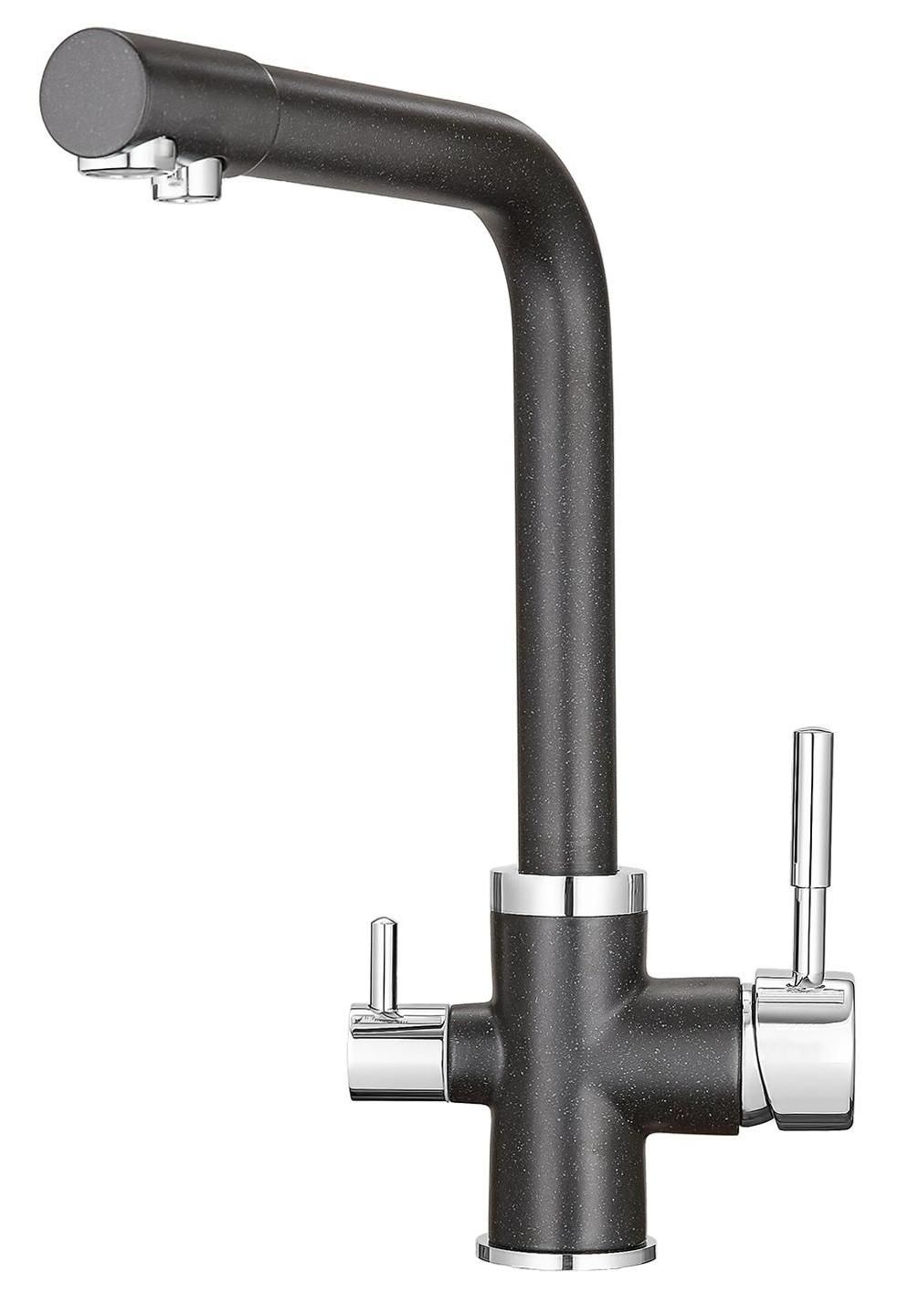 Смеситель для кухни Point PN3103B черныйСмеситель для кухни PN3103 с подключением к фильтру для питьевой воды незаменим на любой кухне. Высокий поворотный излив рассчитан на набор как проточной, так и питьевой воды в емкости разной высоты. Корпус смесителя выполнен из латуни. Картридж диаметром 35 мм позволяет настроить подходящую температуру воды. Цвет смесителя подобран под аналогичный цвет моек POINT. Смеситель PN3103 предназначен для установки в заранее подготовленное отверстие диаметром 35 мм, его можно установить как на мойку, так и на столешницу.Цвет - черный