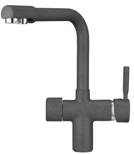 Смеситель для кухни Point PN3104GR графитСмеситель для кухни PN3104 с подключением к фильтру для питьевой воды незаменим на любой кухне. Высокий поворотный излив рассчитан на набор как проточной, так и питьевой воды в емкости разной высоты. Корпус смесителя выполнен из латуни. Картридж диаметром 35 мм позволяет настроить подходящую температуру воды. Цвет смесителя подобран под аналогичный цвет моек POINT. Смеситель PN3104 предназначен для установки в заранее подготовленное отверстие диаметром 35 мм, его можно установить как на мойку, так и на столешницу.Цвет - графит