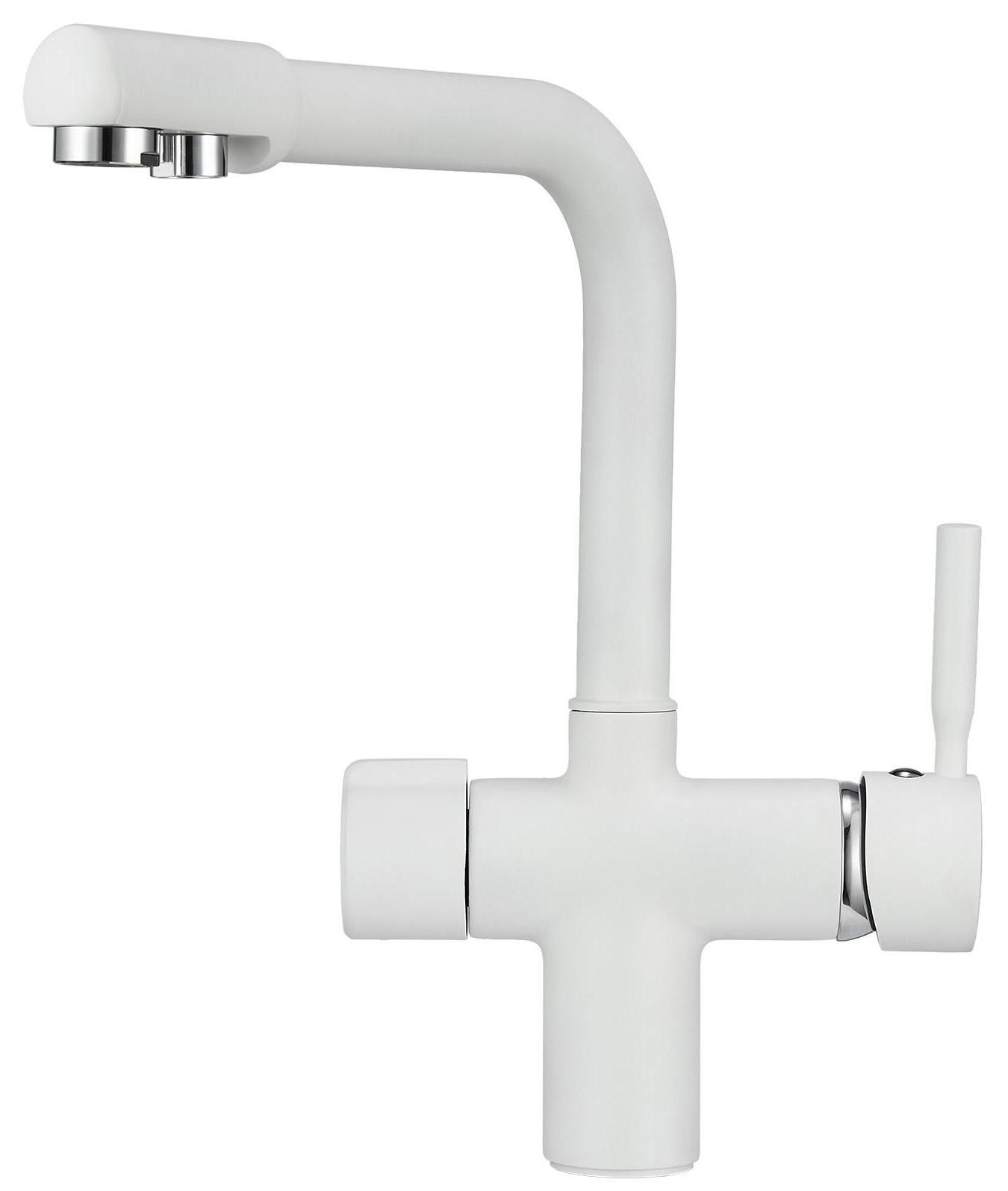 Смеситель для кухни Point PN3104W белыйСмеситель для кухни PN3104 с подключением к фильтру для питьевой воды незаменим на любой кухне. Высокий поворотный излив рассчитан на набор как проточной, так и питьевой воды в емкости разной высоты. Корпус смесителя выполнен из латуни. Картридж диаметром 35 мм позволяет настроить подходящую температуру воды. Цвет смесителя подобран под аналогичный цвет моек POINT. Смеситель PN3104 предназначен для установки в заранее подготовленное отверстие диаметром 35 мм, его можно установить как на мойку, так и на столешницу.Цвет - белый