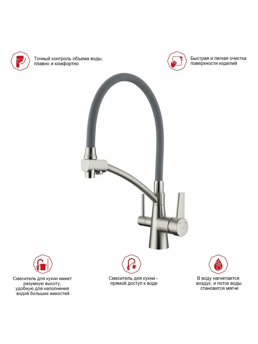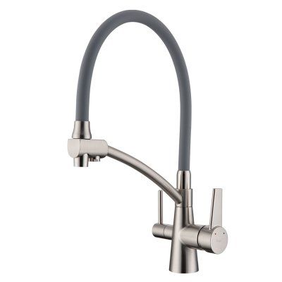 Смеситель для кухни Raglo R80.621.05 со съёмным гибким изливом на держателе и подключением фильтра питьевой воды сатин купить