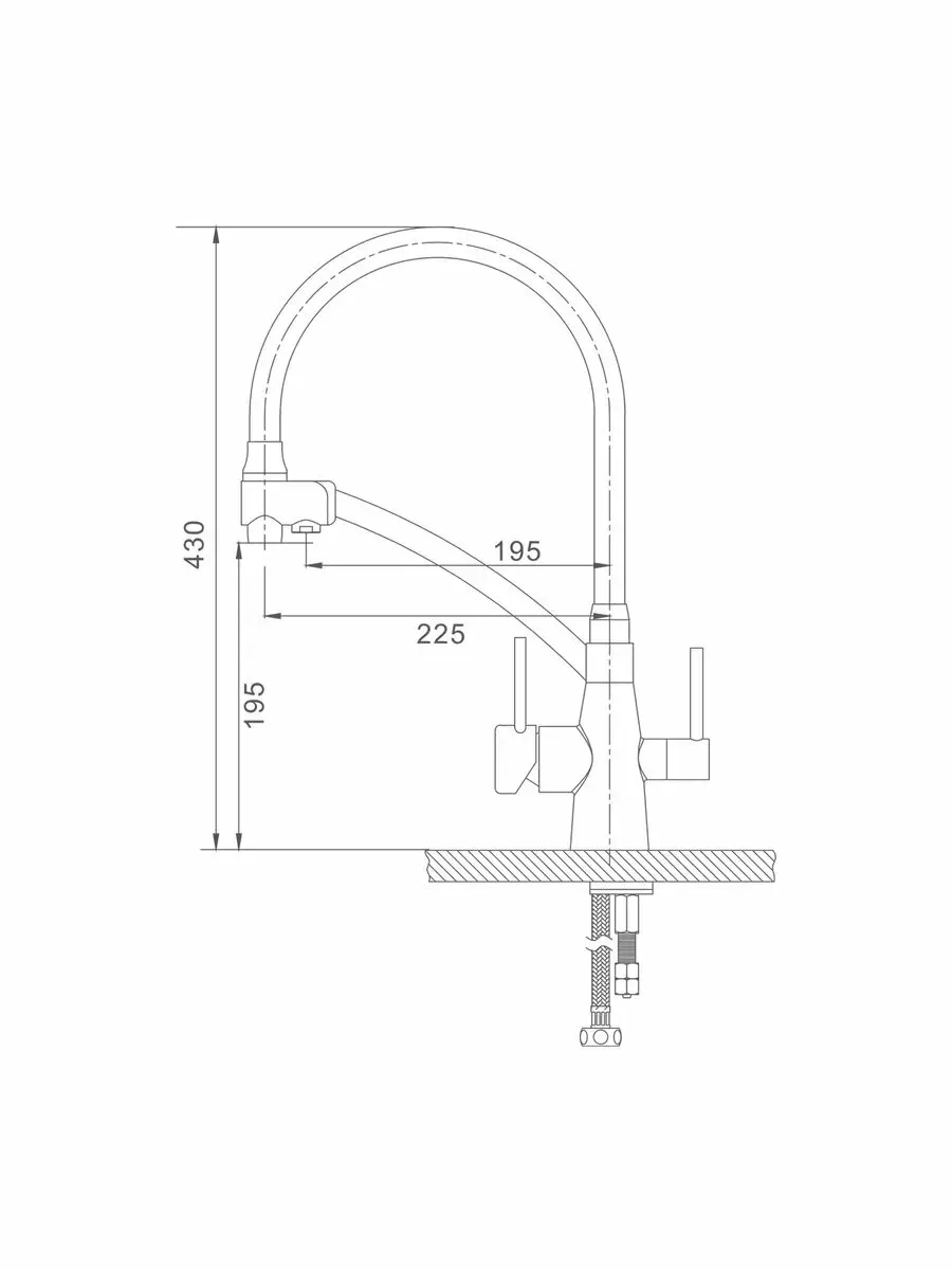Управление однорычажное, есть переключение на фильтр. Подводка гибкая. Картридж керамический 35мм. Высота излива 43см. Режим подачи воды 1. Монтаж производится на 1 отверстие на шпильке. Приссоеденительный размер: 1/2".