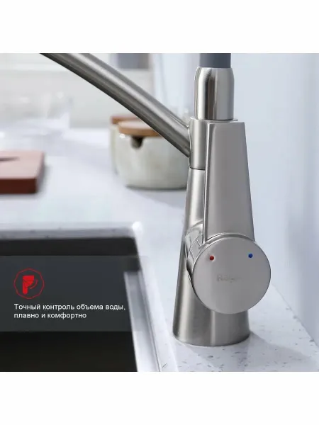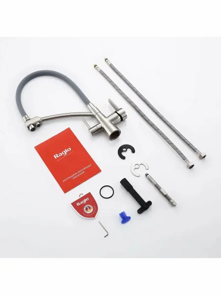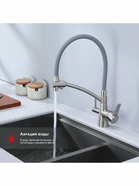 Смеситель для кухни Raglo R80.621.05 со съёмным гибким изливом на держателе и подключением фильтра питьевой воды сатин