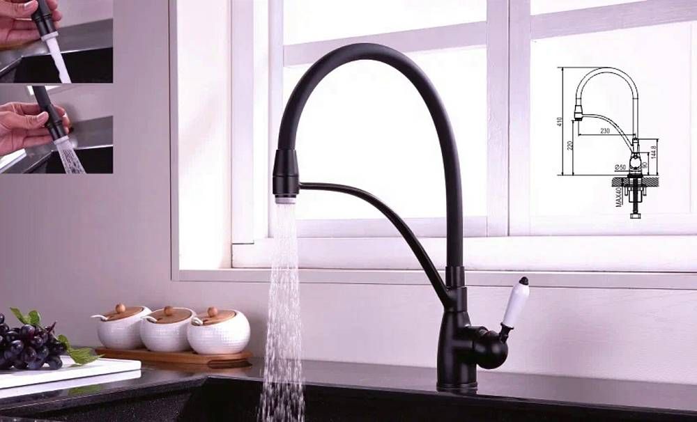 Смеситель для кухни Rose R153 R153H, черный.