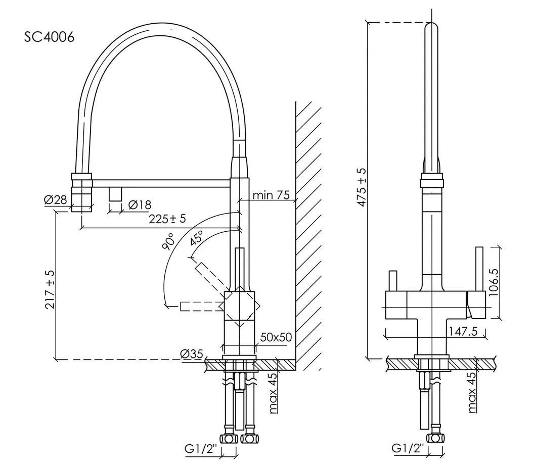 Высота смесителя:47.5