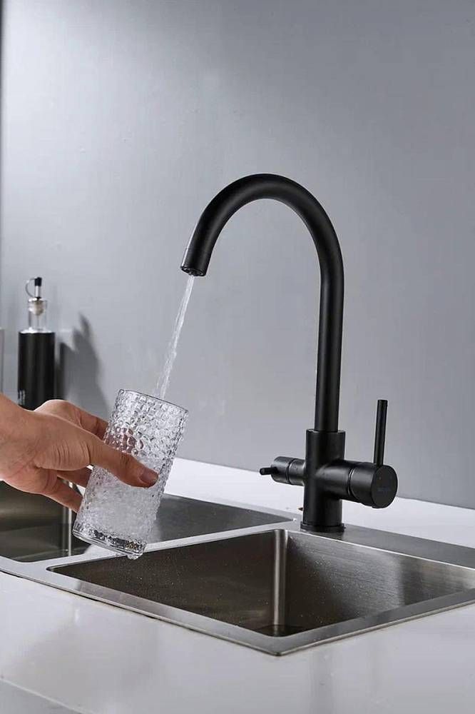 Смеситель для кухни Shevanik S128H с подключением фильтра чёрный купить