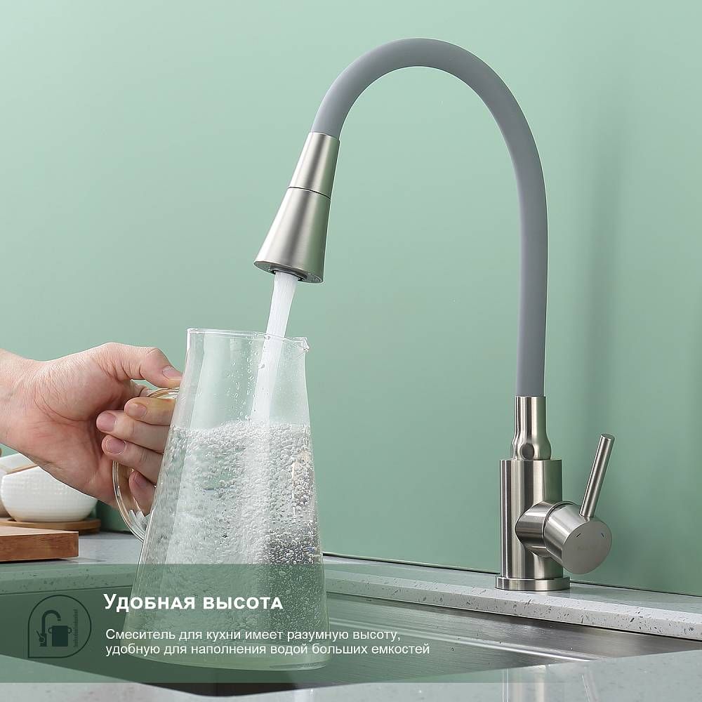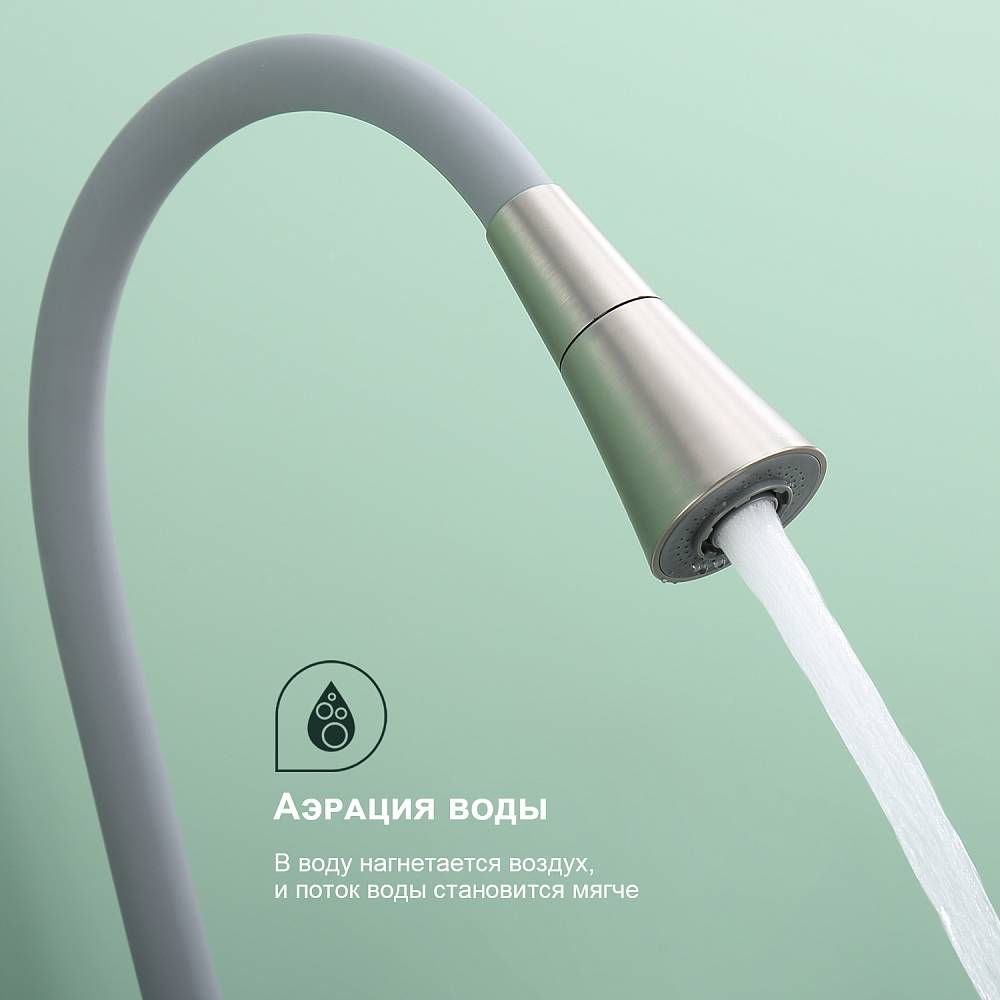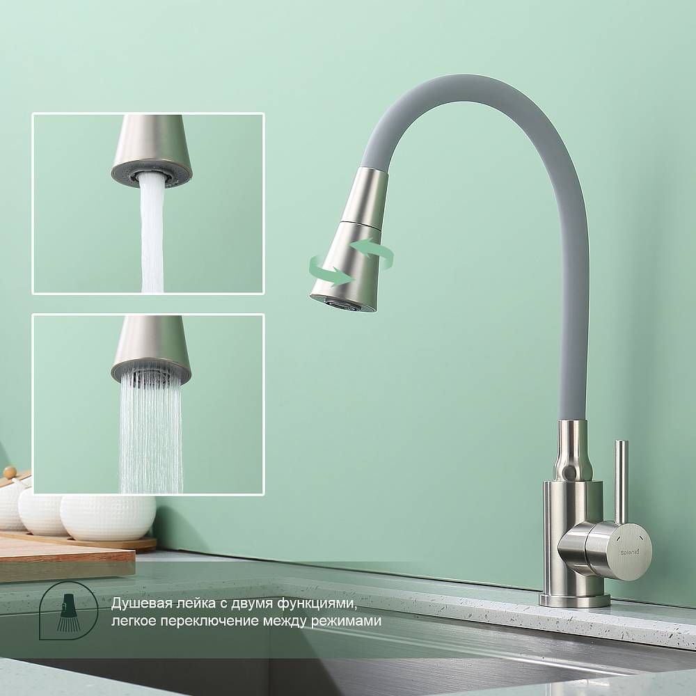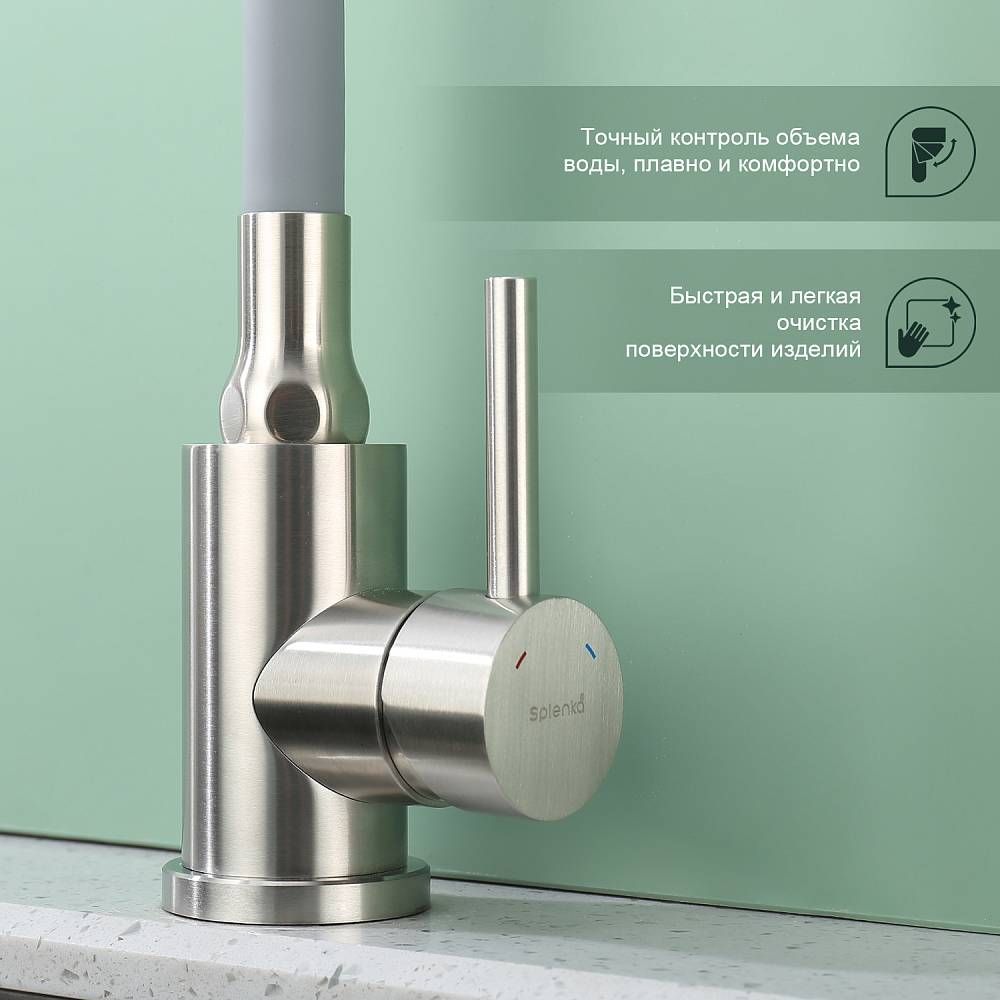 Смеситель для кухни Splenka S201.4307.05, цвет - сатин. Данный кухонный смеситель с аэратором - идеальный выбор для тех, кто ищет надежное и функциональное оборудование для своей кухни. Он обладает рядом преимуществ, которые позволяют использовать его с максимальной эффективностью. Кран выполнен из высококачественных материалов, что гарантирует его долговечность и надежность. Он прекрасно подойдет для использования в условиях повышенной влажности и температуры. Кроме того, обеспечивает плавное регулирование потока воды, что позволяет экономить воду и создавать комфортные условия для приготовления пищи. Стильный и современный дизайн смесителя позволяет ему легко вписаться в любой интерьер кухни. Оснащен гибкой системой подключения, что облегчает его монтаж и установку. Он также имеет поворотный излив, который позволяет направлять струю воды в нужном направлении. Кухонный смеситель является неотъемлемой частью любой кухни, и данный смеситель - отличный выбор для тех, кто ценит качество, надежность и комфорт. Гарантия на сантехнику от производителя - 5 лет на смеситель, 2 года на покрытие.