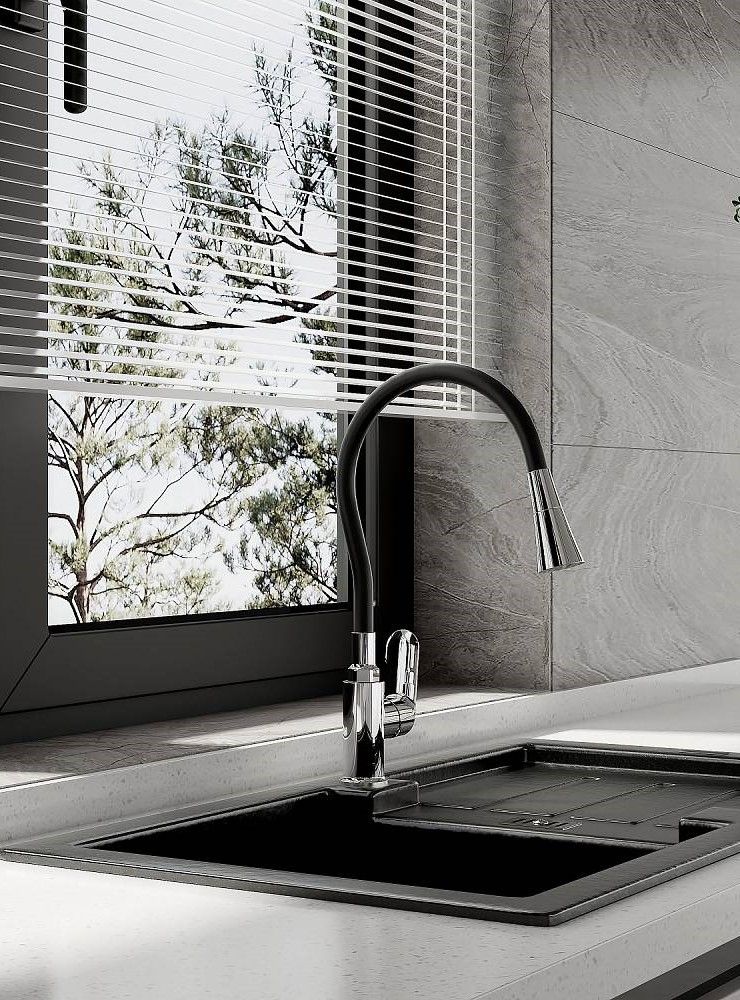 Смеситель для кухни Splenka S41.43 идеально подходит для кухонной мойки, раковины любого типа. Смеситель имеет 2 режима: поток воды и душ. Кран с гибким изливом имеет необычный внешний вид и особую конструкцию. С помощью гибкого шланга можно самостоятельно регулировать глубину выноса и высоту излива, что позволит избежать лишнего разбрызгивания воды. Также с помощью силиконового излива не составит труда добраться до всех мест в мойке, а также упрощает мытье посуды и продуктов. Стильный латунный смеситель имеет свойство шумоподавления.
