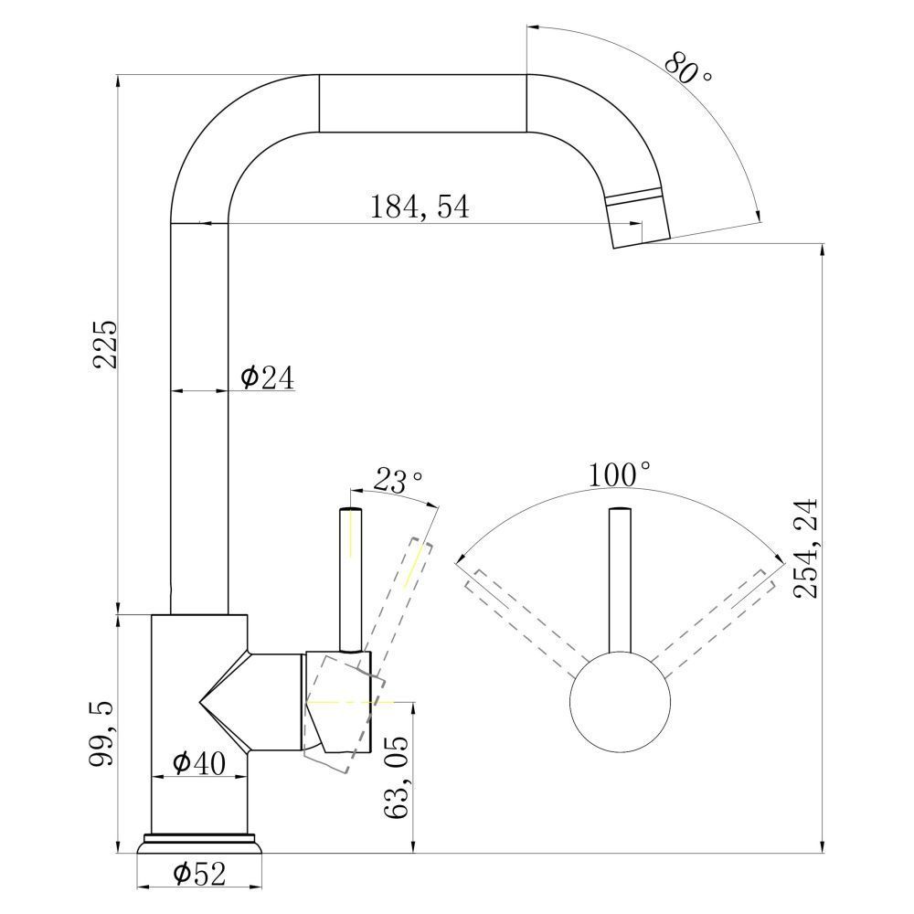 Выдвижной излив:нет