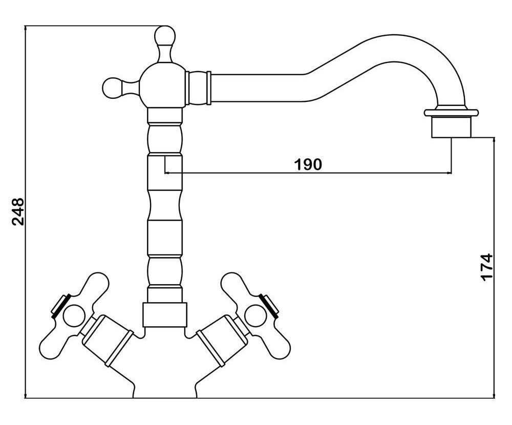 Смеситель для кухни двухрычажный в классическом стилеИзлив с поворотом 360 градусов.Керамический картридж Sedal.Аэратор Neoperl.Гибкая подводка SoftPEX.Гигиенически стабильная латунь с высоким содержанием меди.Цвет: бронза